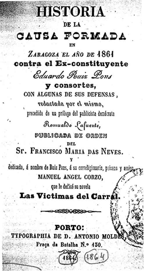 Marcos Argüelles, demócrata español y corresponsal en Oporto de La Discusión, albergó a Ruiz Pons en su casa, sita en “rúa da Corticeira (correspondente coa freguesía da Sé de Porto”, según me cuenta mi querida amiga Ana Filgueiras), pero su presencia desbordó de inmediato la ciudad portuaria haciéndose notar en Lisboa y en Madrid.