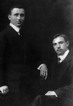 | Gallástegui entró en contacto con Galicia a través de los hermanos López Suárez en su viaje de estudios a Alemania. Visitó por primera vez su hermosa propiedad de Lamaquebrada (Escarirón) en 1911. En el retrato, con Julio López Suárez, en Stuttgart (1914) |