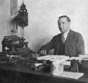 | Gallástegui en su gabinete de trabajo. El mismo año del establecimiento de la Misión Biológica de Galicia en el actual Parlamento de Galicia. En Compostela, 1921. |