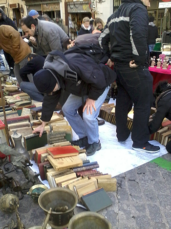 Historias del Rastro.- Desde hace algunas semanas -en los domingos del Rastro- se vende la que pudo haber sido la Biblioteca de Santiago Ramón y Cajal, o una parte de ella. El punto de venta está en un lateral del antiguo Cerrillo del Rastro, razón de las cuestas que conducen a él. Hoy esa cima se ha convertido en una plaza amplia y muy entretenida. Cada domingo, se pone de punto en blanco. Todas sus leoneras están abiertas y sus puestos callejeros tienen alto interés, por lo variado de la cacharrería que se oferta, y por la gracia de los montajes a ras de suelo, dispuestos para competir durante toda la mañana con los escaparates convencionales.